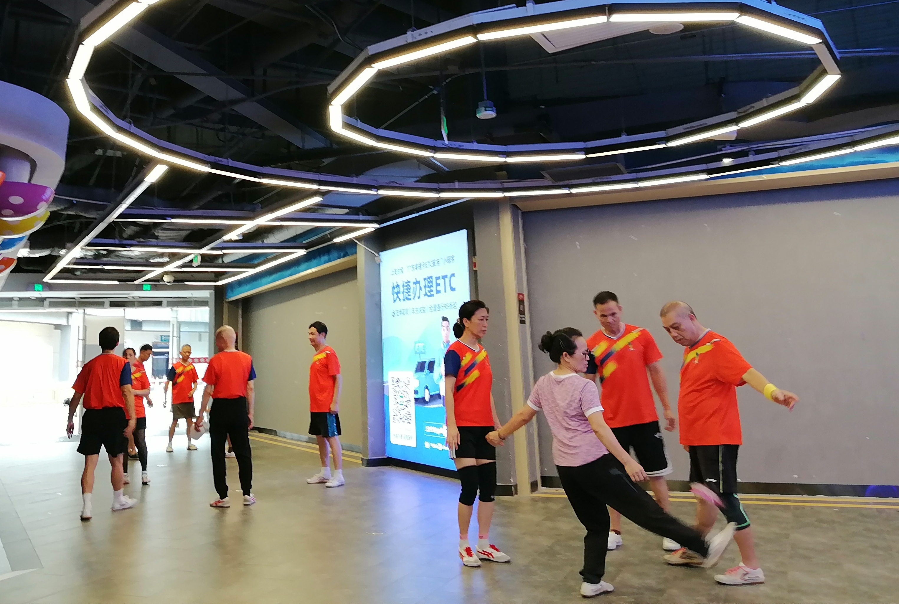“四人围踢最考‘心毽合一’,毽到谁脚边,谁就得用最合适的技法衔接,快不得也慢不得。”冼伟家擦着汗介绍,“刚才从化毽友那记‘头项转毽’,要在毽落肩头的0.1秒内找准触点,这和粤剧里旦角的甩袖功夫异曲同工。”一旁的南沙毽友则补充道:“我们南沙派讲究‘毽不落地’,但和番禺的花式、从化的控场配合时,得临时调整节奏,这种磨合特别有意思。”